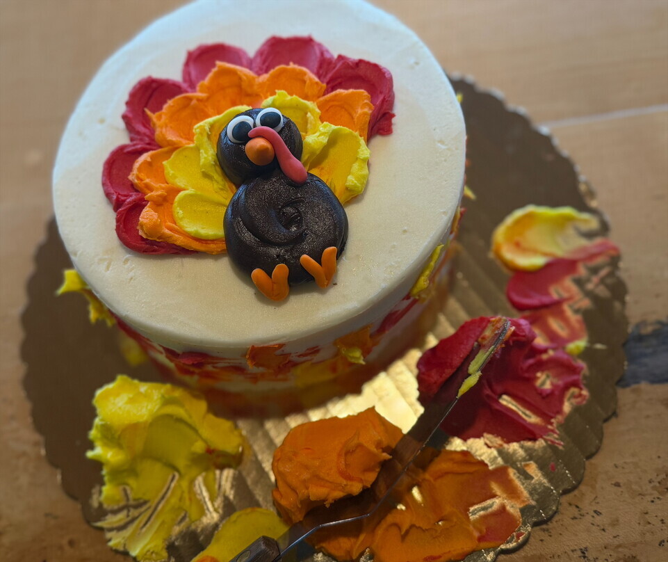 Holiday Cake & Sip Class - Learn how to decorate a small cake with a Thanksgiving or Christmas themed design. Soft drinks, beer and wine available for purchase separately during the class.