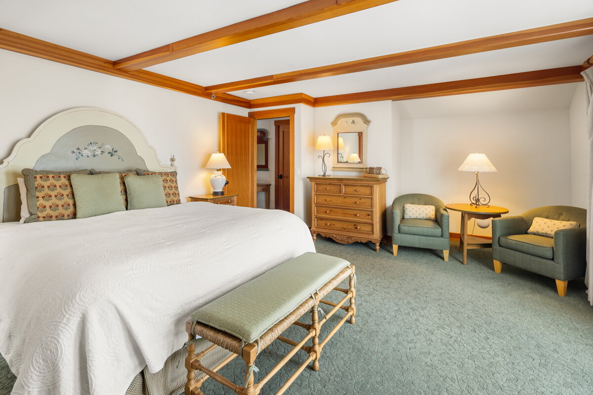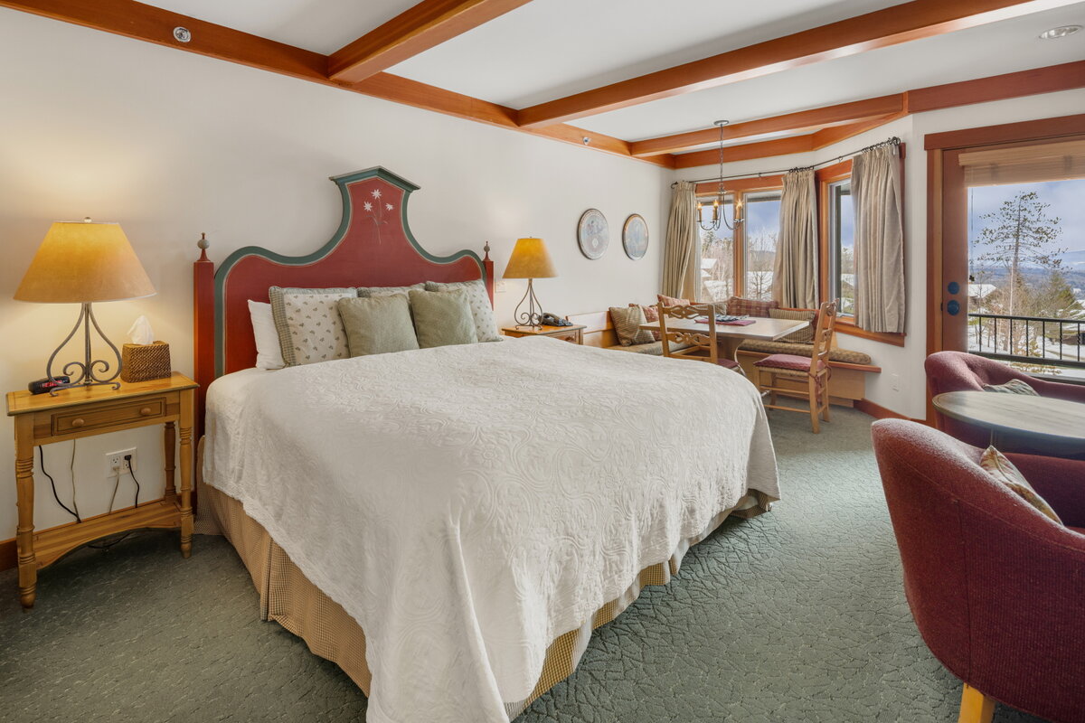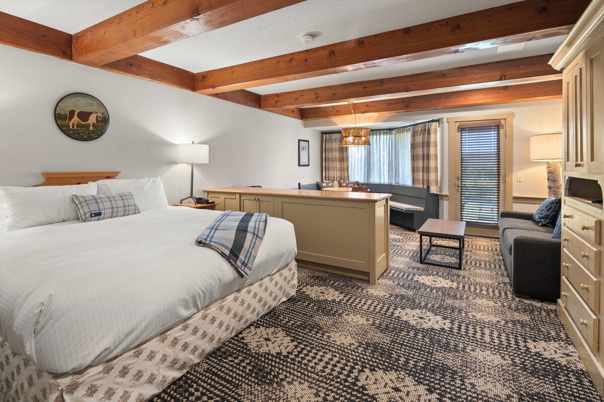 Pinnacle King rooms feature one king bed and a queen size sleeper sofa. They have either a balcony with mountain views or a patio with orchard views.