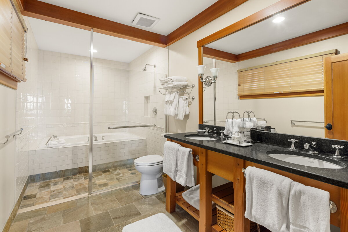 These luxurious three-bedroom Villas are private units offering spacious living and bedrooms, separate full bathrooms, massive stone fireplaces, dining areas, and fully equipped kitchens. Villas cannot accommodate rollaway beds.