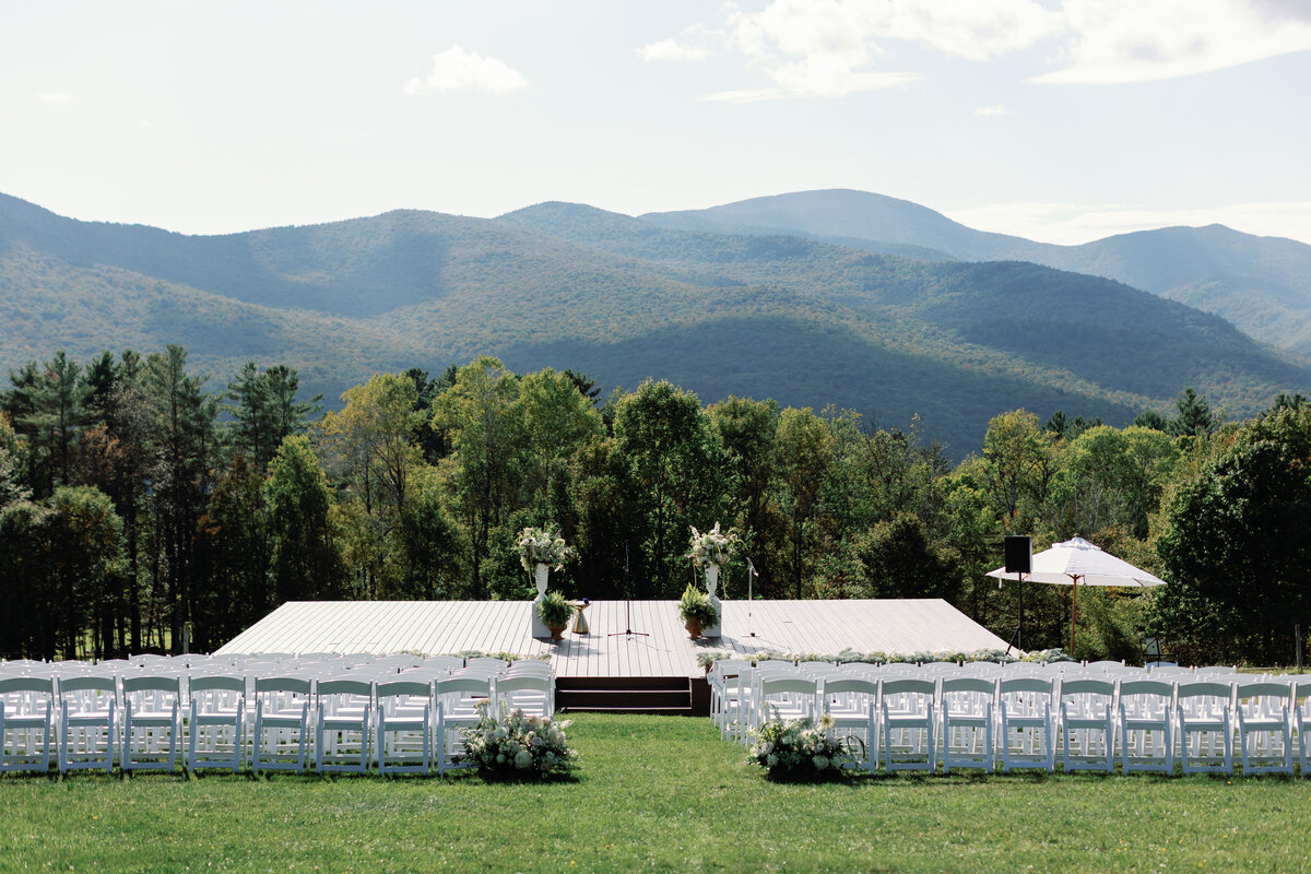 Our large, hilltop Wedding Meadow, with a panoramic view of the mountain ranges surrounding Stowe, is secluded from the Main Lodge. It is an idyllic setting for a tented wedding ceremony or reception. In this space, the sky truly is the limit.